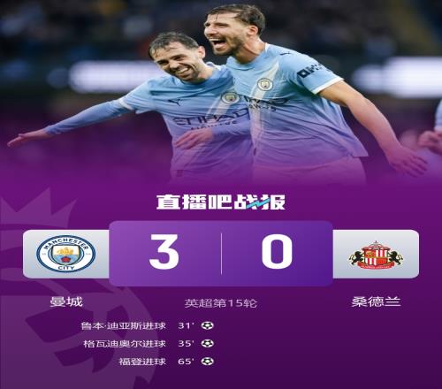 12月6日晚上23:00,英超第15轮在伊蒂哈德球场进行,曼城迎战桑德兰。比赛过程中,曼城展现出强大的攻击力,以3-0的成绩轻松拿下对手,积31分暂列联赛第二,距离榜首的阿森纳仅差2分,而桑德兰则以23分位列第七。
