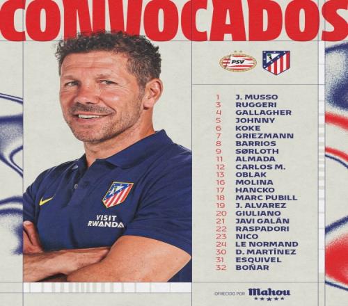 马竞客场对阵埃因霍温的出征名单:卡尔多索回归,朗格莱因肌肉问题未能参赛_西甲直播